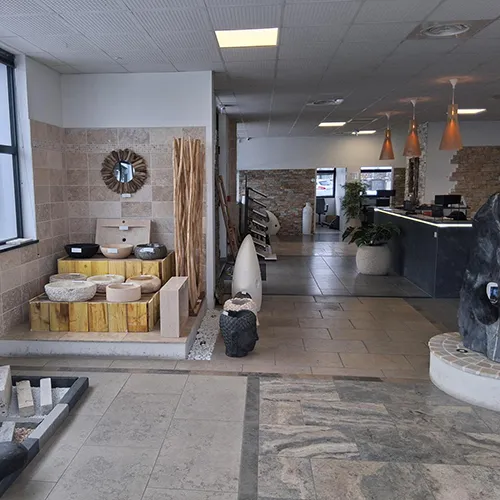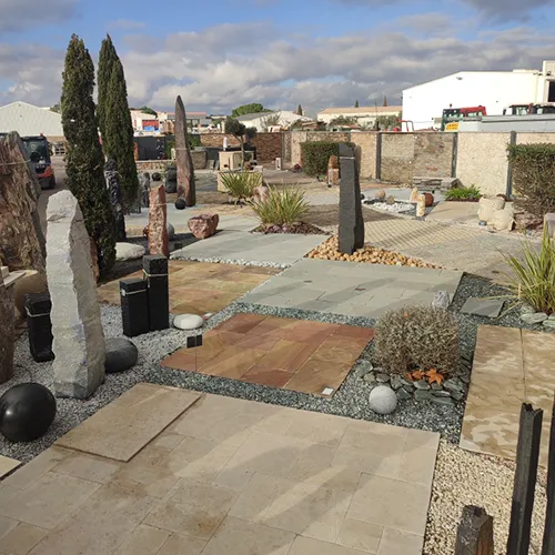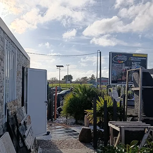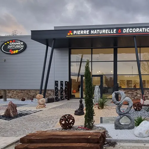 À travers ses showrooms spécialisés, Granier Diffusion vous invite à découvrir l’univers de la pierre naturelle dans des conditions réelles d’exposition. Ces espaces inspirants présentent les différents matériaux en situation : revêtements de sols, murs en pierre, décorations paysagères, pierres naturelles pour jardin ou terrasse, avec une mise en scène qui facilite la projection.