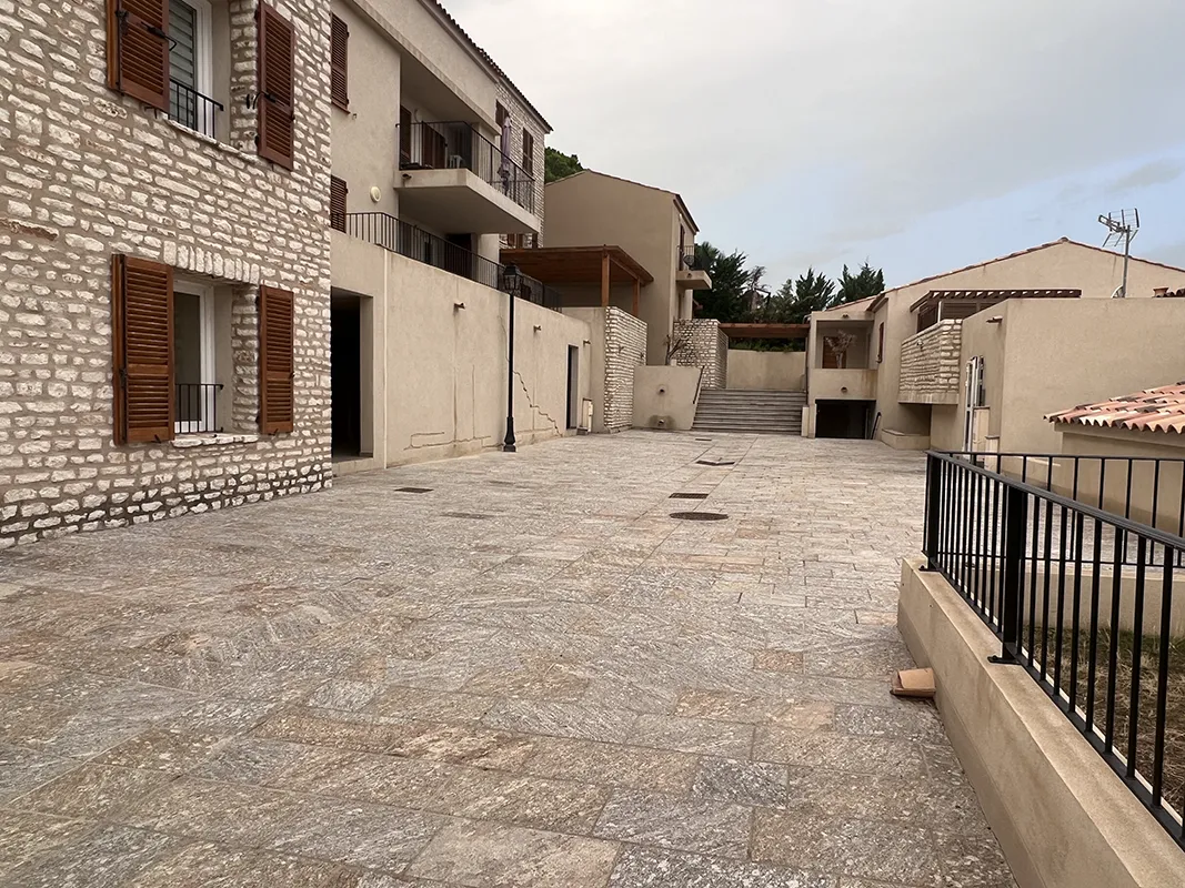 Dallage Galala 80×80 sable et brossé